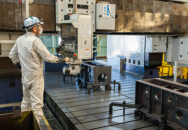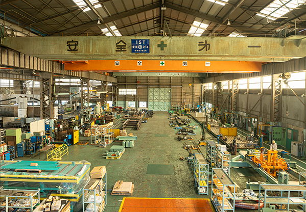 重量20トン・長さ10mの大型部品の製缶や機械加工が可能。長尺フレーム等の一体製作により高品質・組立工数削減を可能にします。